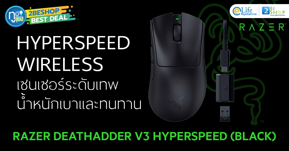 RAZER DEATHADDER V3 HYPERSPEED (BLACK) (RZ01-05140100-R3A1)คุณสมบัติเด่น (Features)