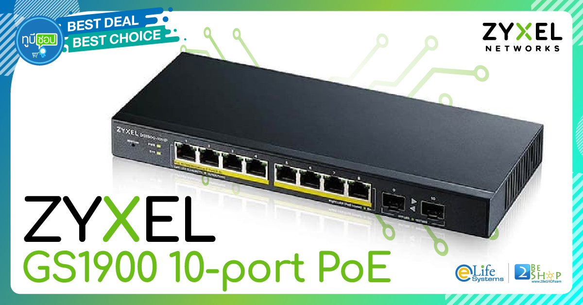 ZYXEL GS1900 8-port GbE Smart Managed PoE Switch with GbE Uplink8 x GbE PoE RJ-45 ports