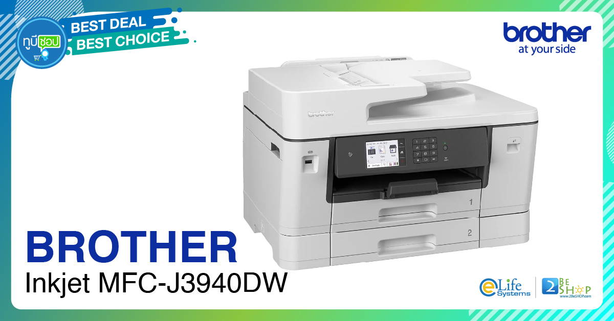Brother Inkjet MFC-J3940DWเครื่องพิมพ์อเนกประสงค์ InkJet MFC A3 ระบบตลับหมึก 6-in-1 : Print/Fax/Copy/Scan/PC Fax/Direct Print