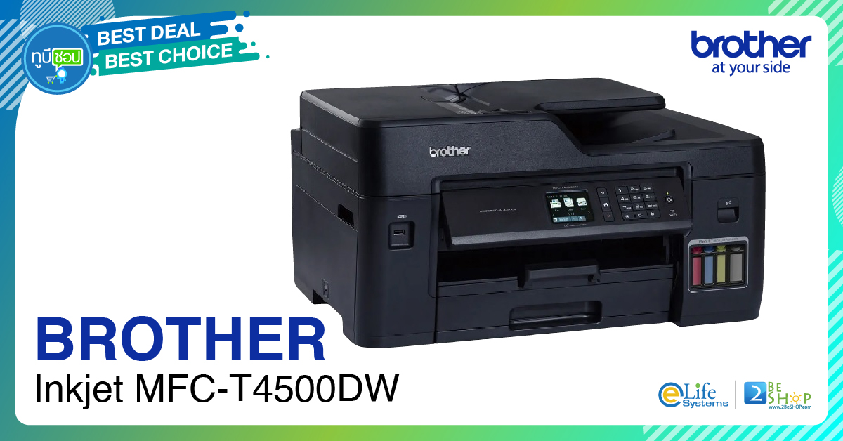 Brother Inkjet MFC-T4500DWเครื่องพิมพ์อเนกประสงค์ A3 ระบบ Refill Tank Sytem แบบฝาเปิด-ปิด 6 in 1 - พรินเตอร์ / แฟกซ์ / ถ่ายเอกสาร / สแกนเนอร์ / พีซีแฟกซ์ /