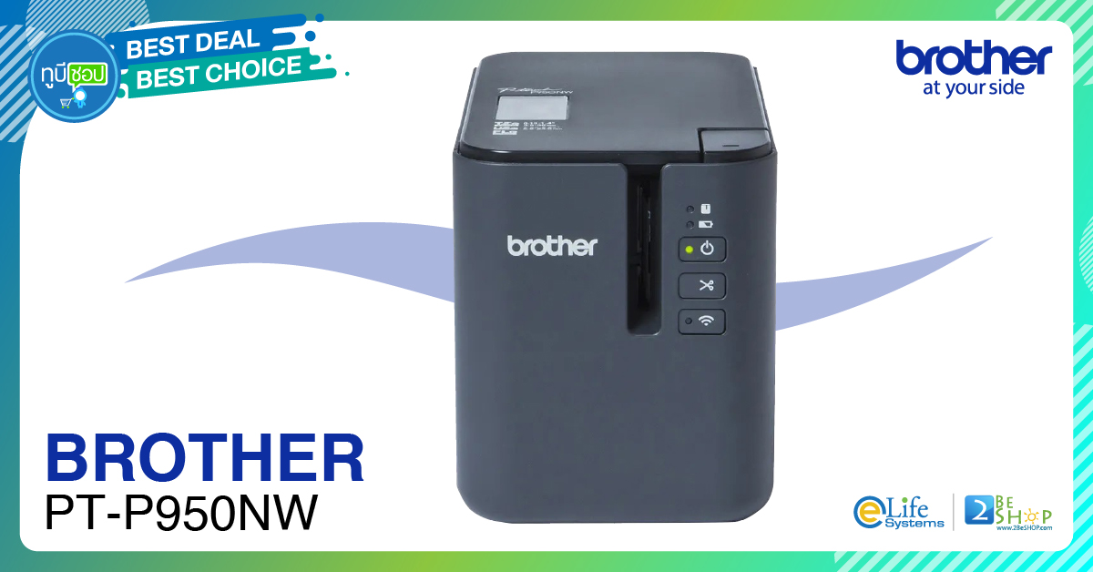 Brother PT-P950NWเครื่องพิมพ์ฉลากแบบต่อเชื่อมคอมพิวเตอร์ ความละเอียด 360 dpi, พิมพ์ได้เต็มฉลากยิ่งขึ้น 32mm (Print Height), รองรับการทำงานแบบเครือข่ายไร้สาย (wireless), สามารถเชื่อมต่อผ่านระบบเน็ตเวิร์กผ่านสาย Lan RJ45 วัสดุการพิมพ์ "TZE" และ HGE