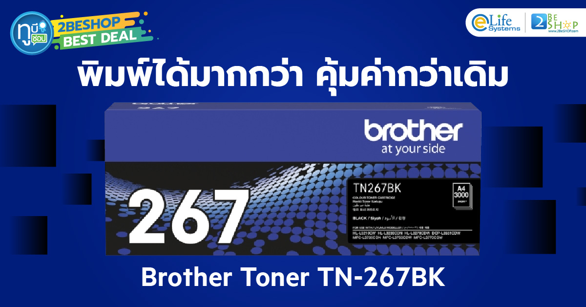 Brother Toner TN-267BK- หมึกสีดำคุณภาพสูง ให้ภาพคมชัดทุกรายละเอียด