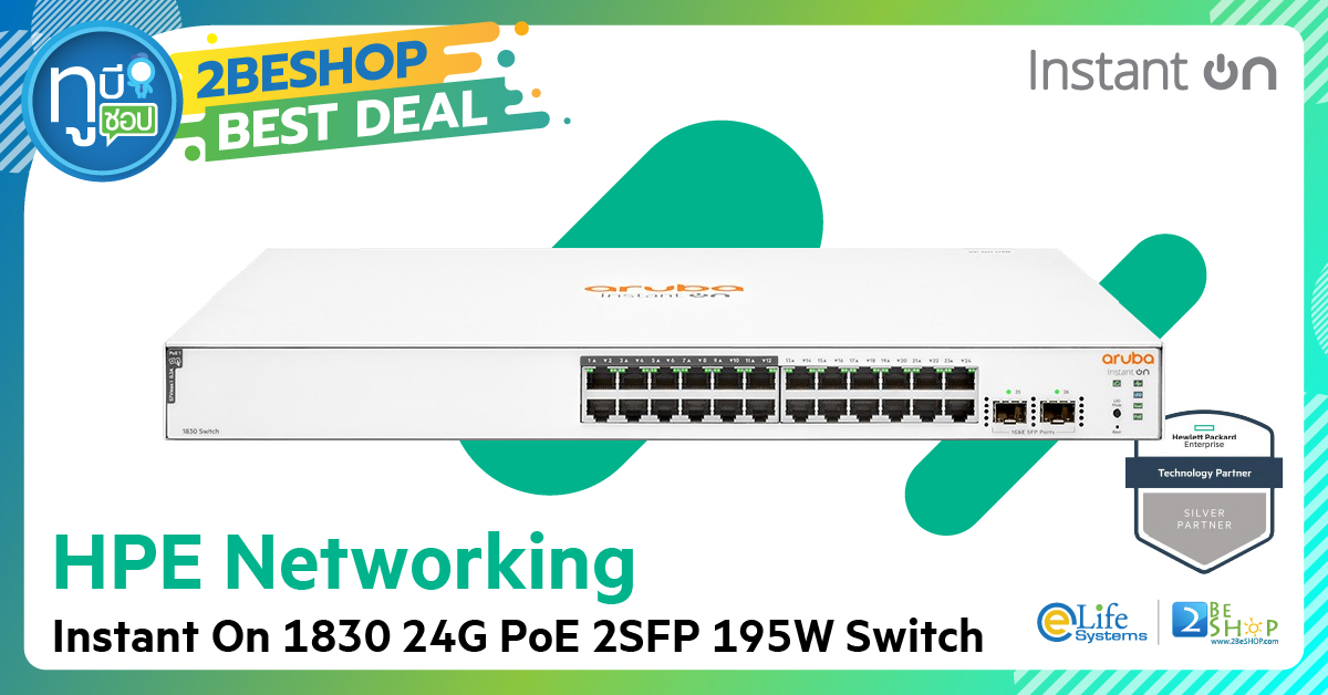 HPE Networking Instant On 1830 24G PoE 2SFP 195W Switch — Part# JL813A