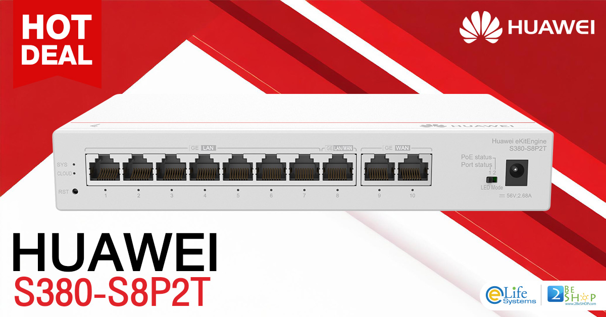 Huawei S380-S8P2T2*GE WAN, 8*GE LAN (PoE+, 124W), up to 350 users, forwarding performance 2Gbps