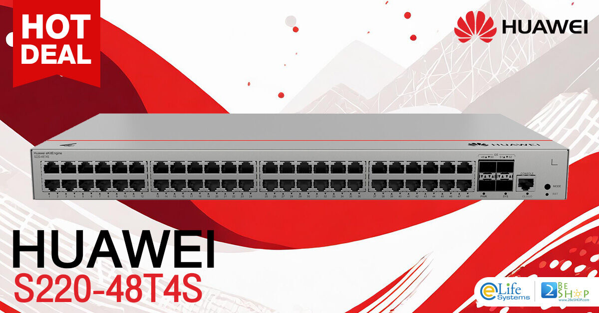 Huawei S220-48T4S48*10/100/1000BASE-T ports, 4*GE SFP ports, built-in AC power