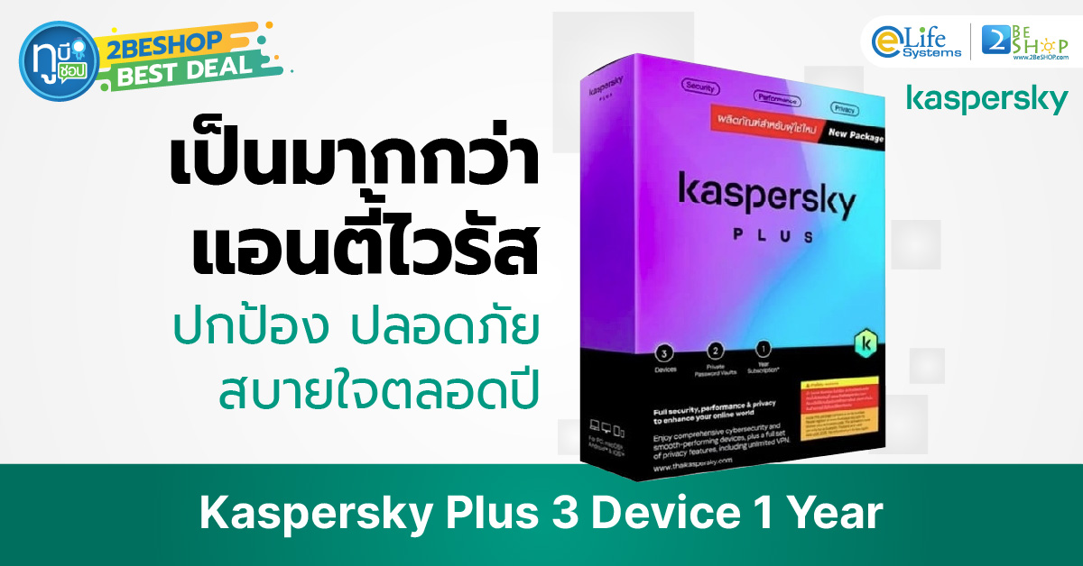 Kaspersky Plus เป็นโปรแกรมป้องกันไวรัสที่เพิ่มความสามารถด้าน Privacy Protection และ VPN Unlimited พร้อมระบบ Password Manager และ Data Leak Detection เพื่อเพิ่มความปลอดภัยของข้อมูลส่วนบุคคล